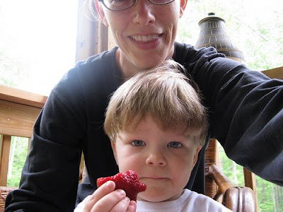 We're a little behind on the garden so far, but we've started to get some things in the ground. We've got 18 tomato seedlings we bought at the Raleigh farmer's market (very close to our house) and they're ready to go in. We also have 13 or so tomato seedlings that we got from our friend Jon, who started them from seed. (Jon - they're looking a little spindly - hopefully they'll perk up). Included in this group are some neat varieties with some unusual colors - I'm really looking forward to seeing how these do.